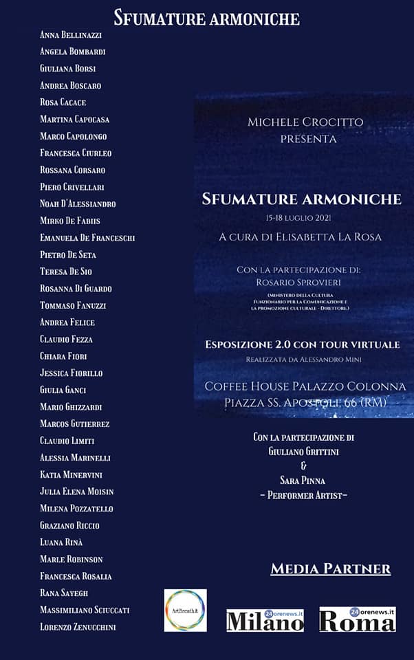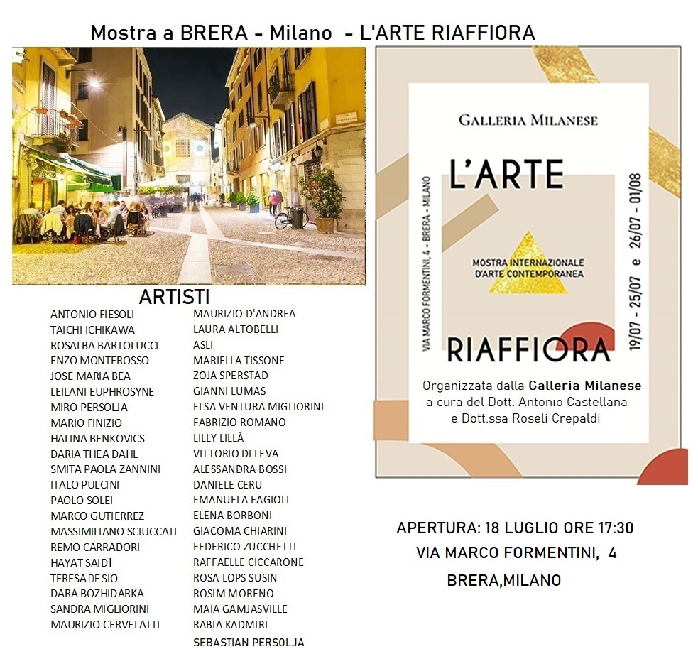 A Milano, ha partecipato alla mostra L’ARTE RIAFFIORA, presso Italiana Art Gallery, in zona Brera, a cura della art director, Dott.ssa. Roseli Crepaldi, e con la partecipazione del critico d’arte Antonio Castellana.