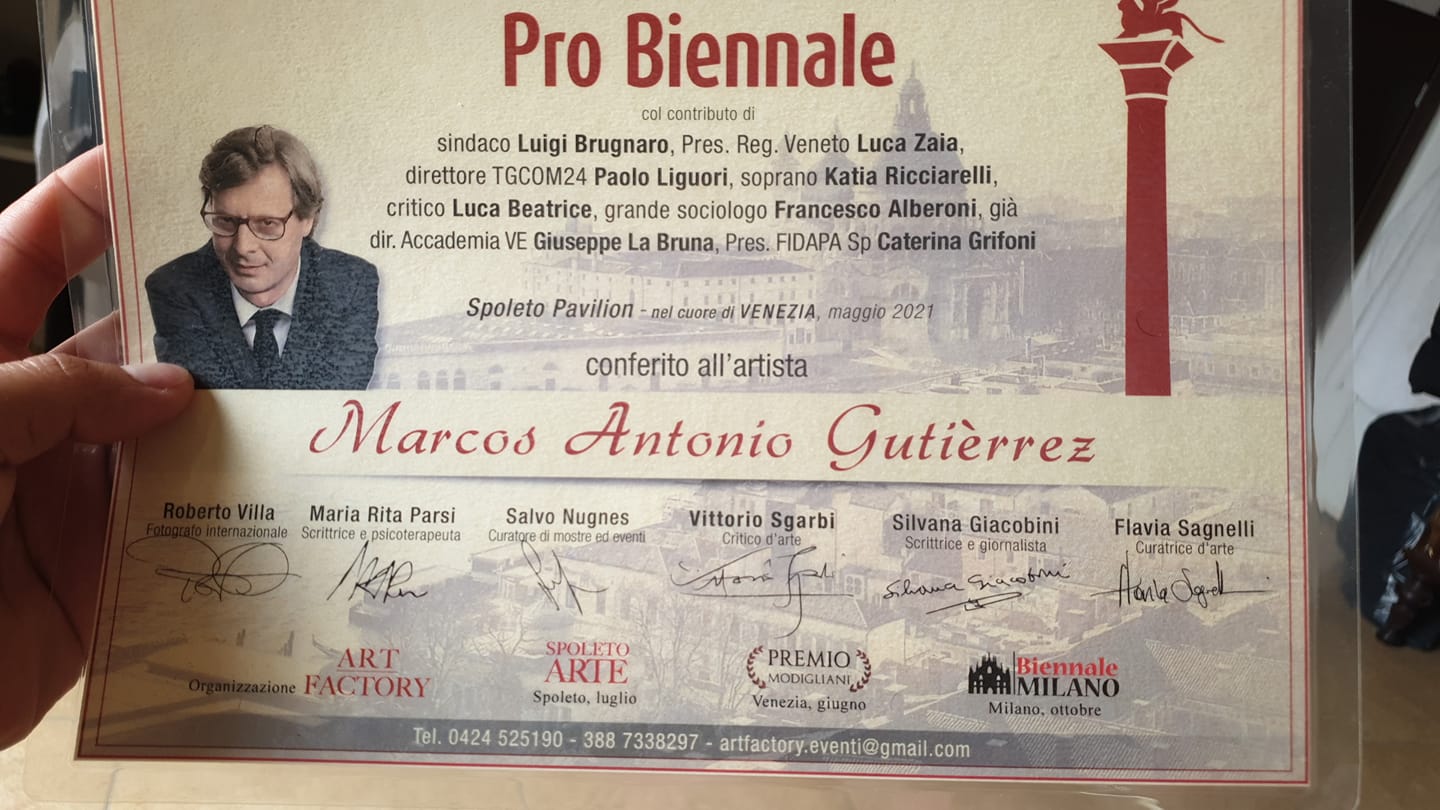 Che Marcos Antonio Gutiérrez fosse particolarmente attivo nel mondo dell’arte contemporanea era cosa risaputa, ma il mese di luglio 2021 verrà ricordato per molto tempo dall’artista, attivo protagonista in rassegne importanti che interessano tutto lo stivale. Da Venezia a Milano, da Roma a Bari.